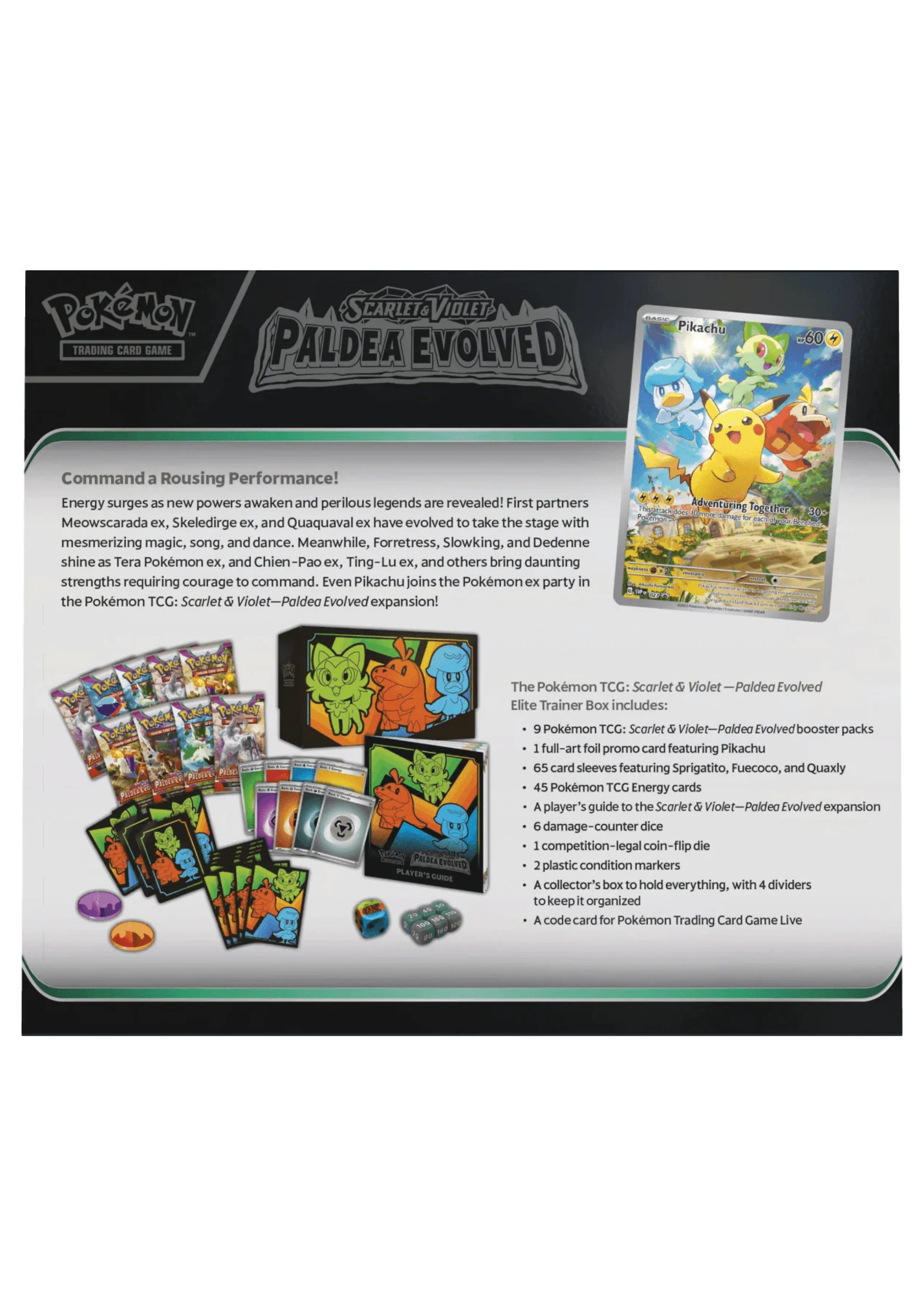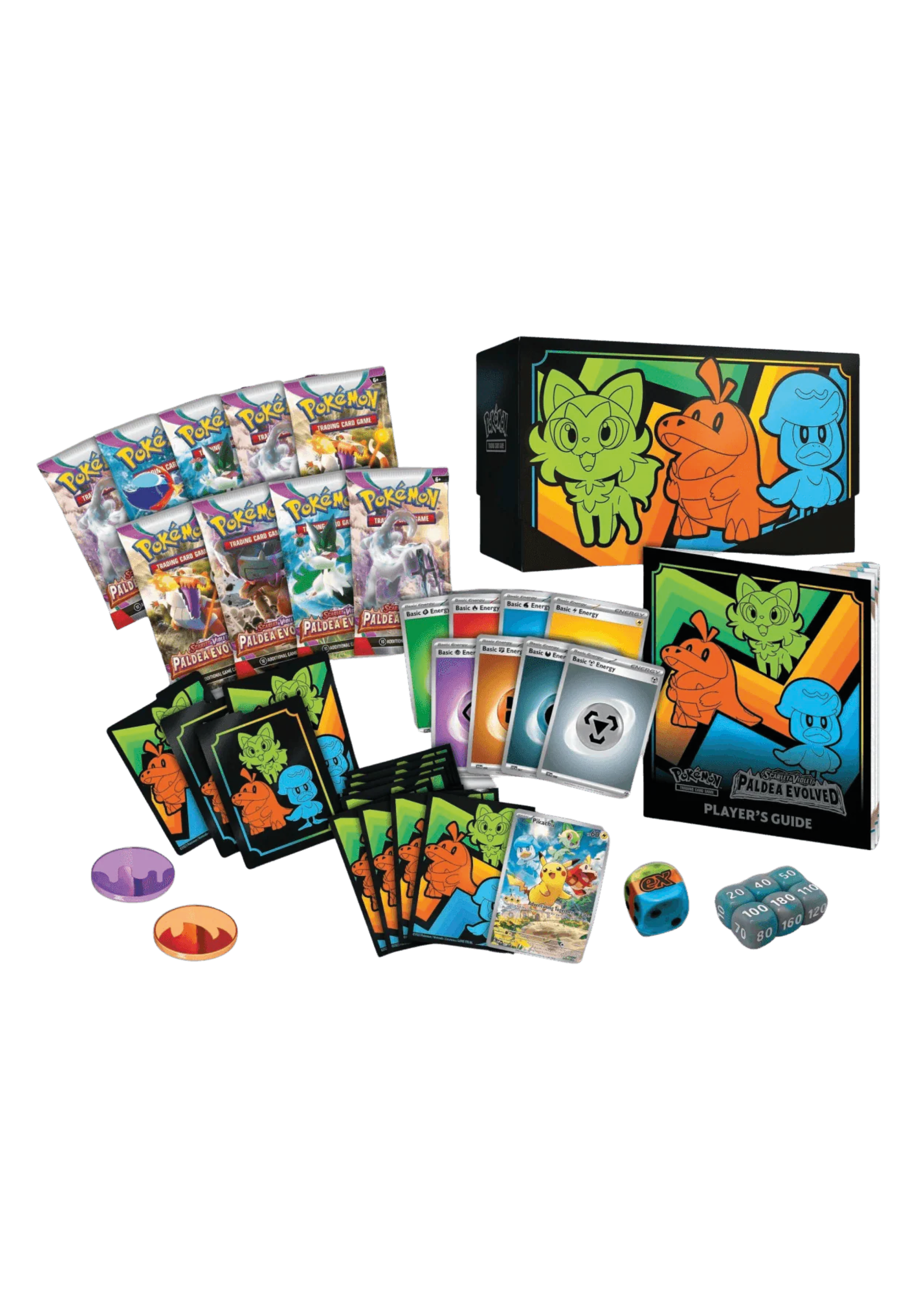 The Pokémon TCG: Scarlet & Violet Paldea Evolved Elite Trainer Box includes: