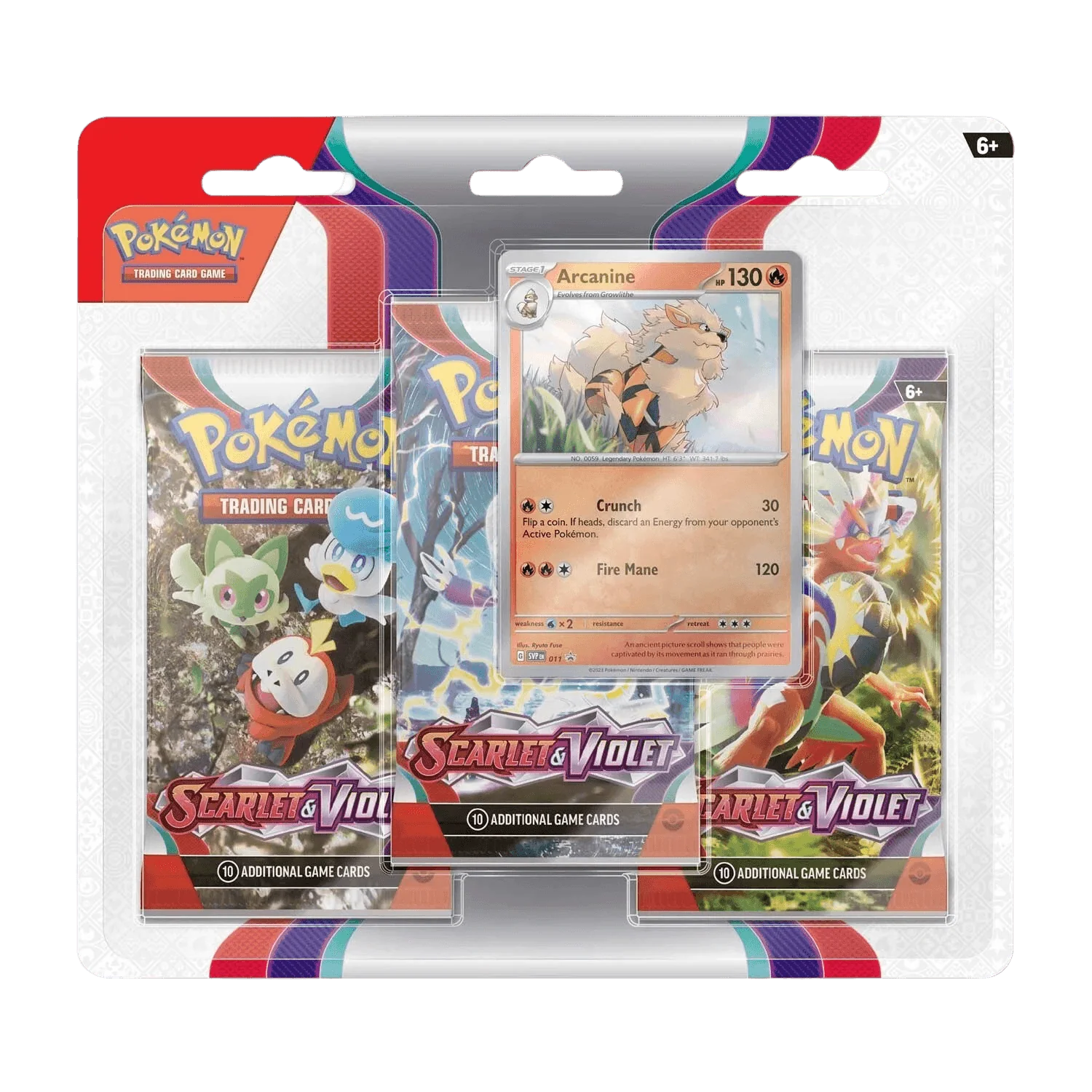 The Pokémon TCG: Scarlet & Violet Base Set 3-Pack Blister - Arcanine contains: